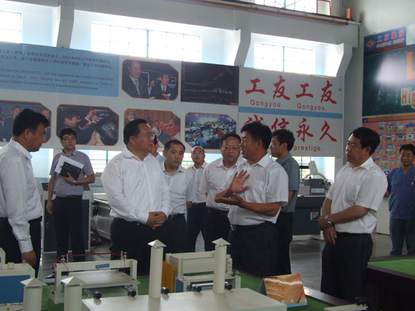 孫述濤書記一行參觀了樣品室,聽取了公司董事長董延偉對公司發展狀況的匯報。他們看到公司與意大利合作研發生產的五種木工機床的外形不僅新穎,而且了解到這些新產品的性能比傳統的木工機械更加先進、更加精密時,對公司的大膽改革創新給予了高度的贊揚,對公司緊跟市場轉方式調結構的做法表示肯定。孫書記還鼓勵說,公司要在科技創新、技改投入上多下功夫,使傳統的木工機械行業煥發新的活力。