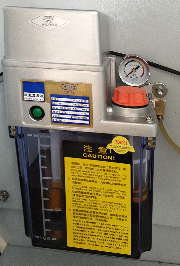 ◆采用日本河谷微電腦自動(dòng)控制注油系統(tǒng),主動(dòng)控制油量,保證導(dǎo)軌充分潤滑,減少浪費(fèi),保證機(jī)床導(dǎo)軌的使用壽命。